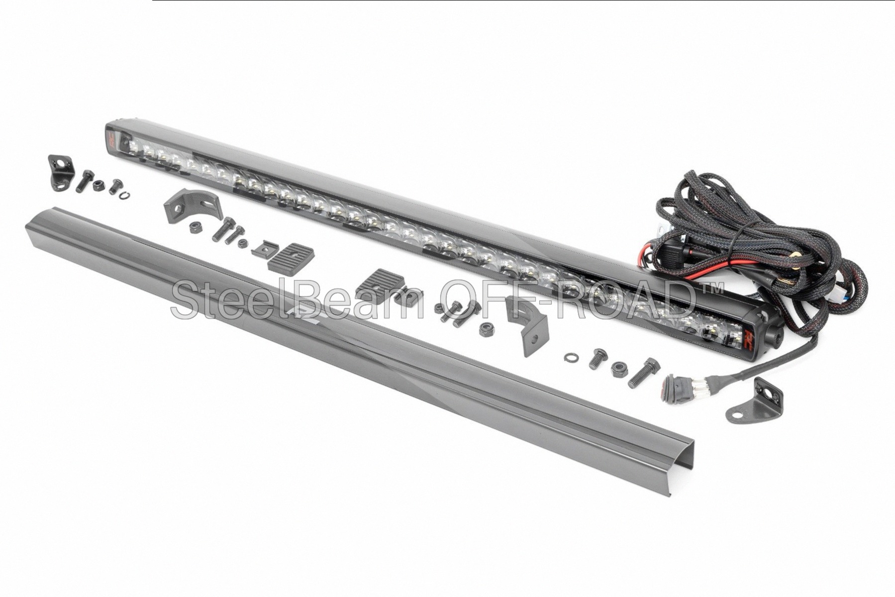 Brighten the night. Experience exceptional off-road illumination with this 30-inch single-row LED light bar. Its sleek, bezel-less design delivers 165 watts and a powerful 14,850 lumens output, with selectable spot or flood beam patterns for long-distance throw or wide-area coverage — perfect for overlanding, rock crawling, four-wheeling, and trail riding.