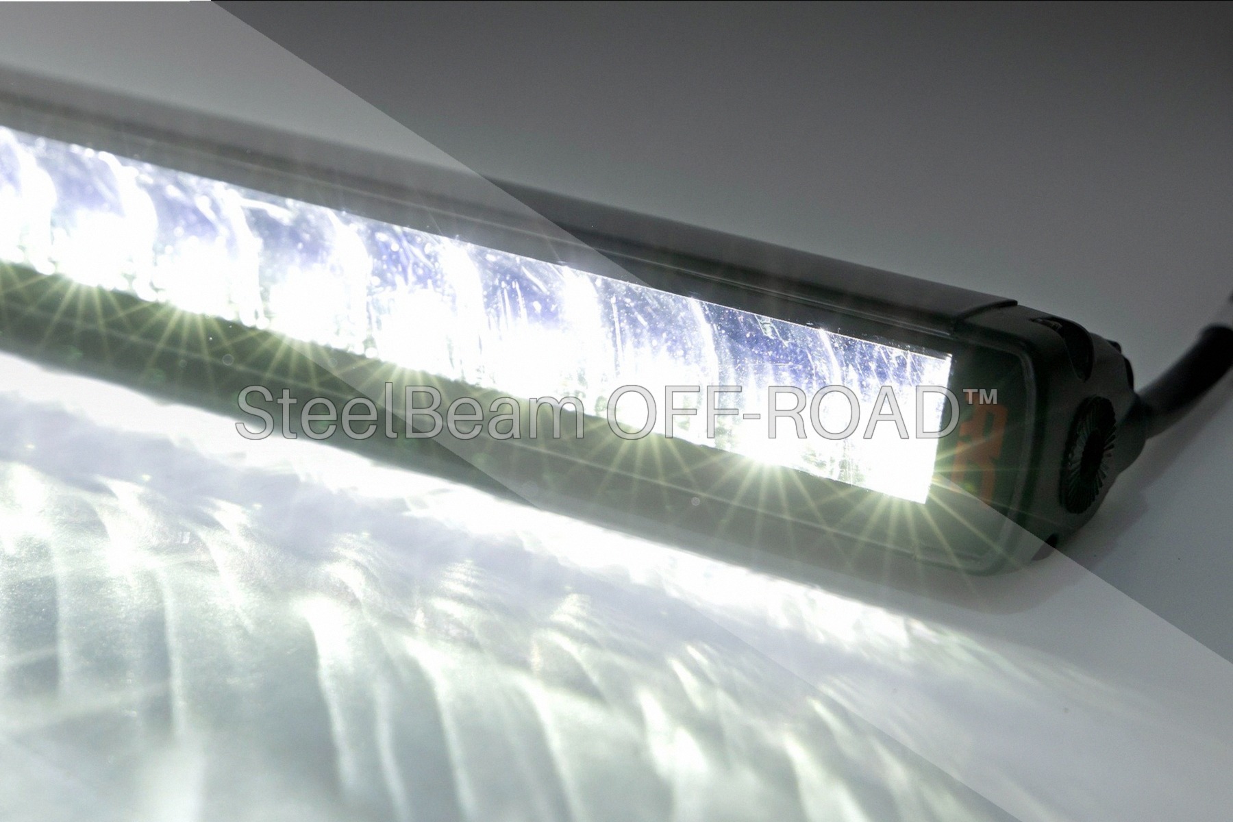 Built to endure. The bar contains 33 x 5W high-output LEDs behind a tinted, diffused lens that reduces glare while maximizing usable light. The lens is impact- and UV-resistant and the assembly carries IP67/IP69K waterproof and dust protection. A die-cast aluminum housing provides rugged durability to withstand harsh conditions and extended use.
